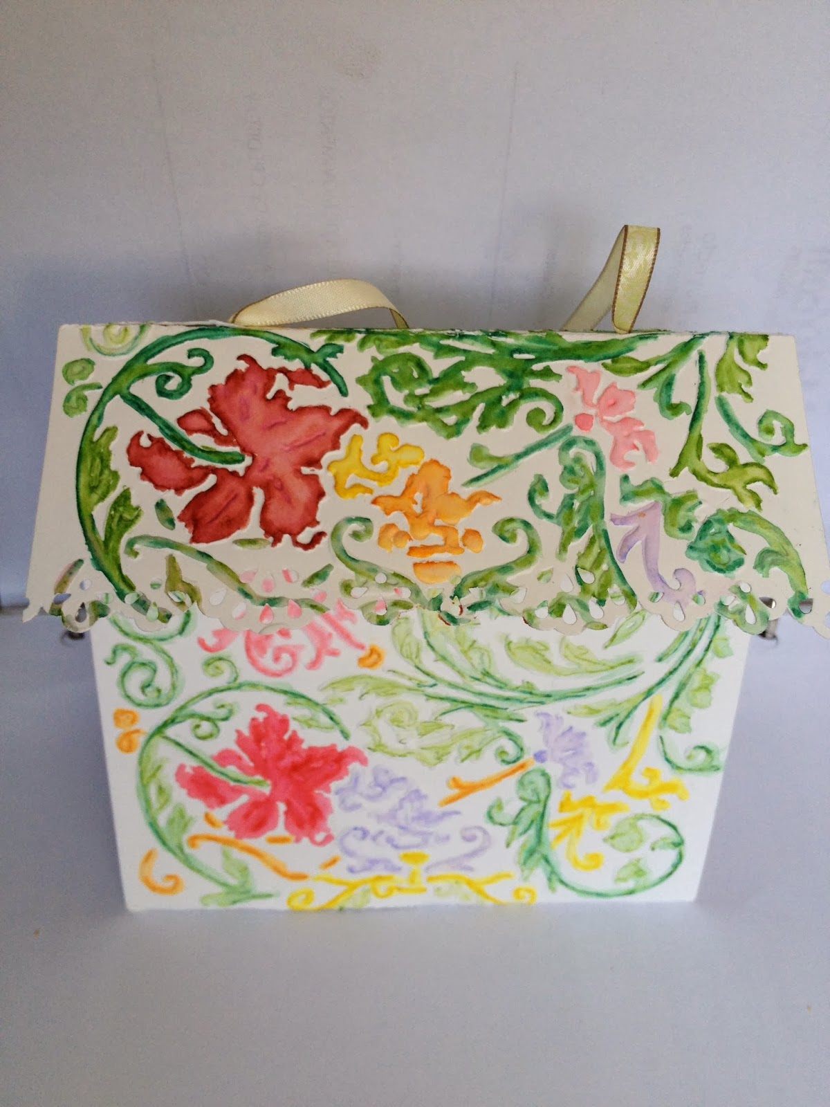 Esta es la parte exterior frontal y exterior trasera, no quedo tan chula, pero es que estaba experimentando :P jejeje, realice dry emboss y después coloree con distress.